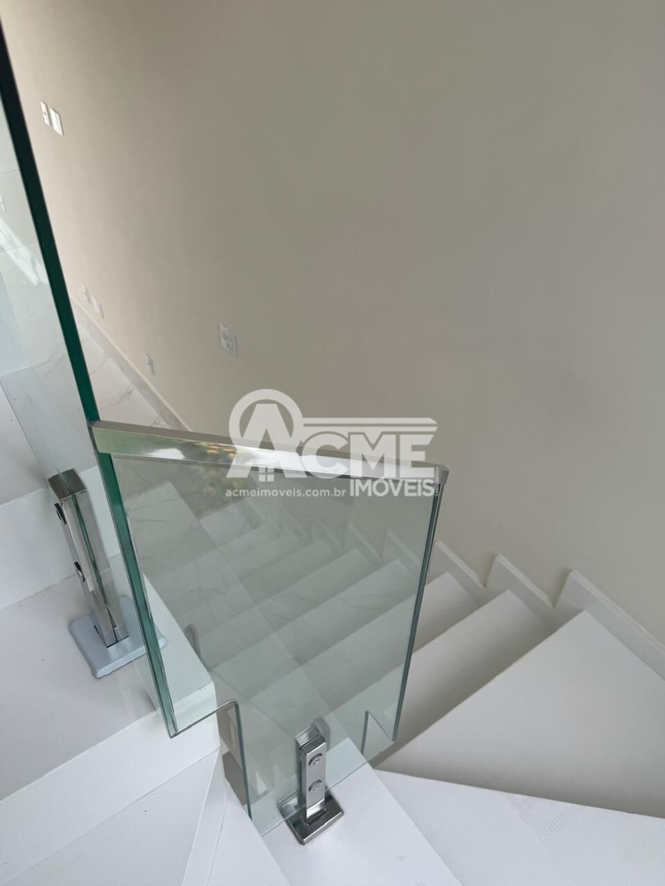 - Guarda corpo em vidro com friso em alumínio cromado e pinças cromadas